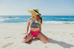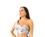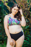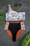 One shoulder top with 24k gold plated jewelry. Variety in print and jewelry.