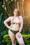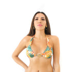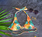 Halter bikini Top with 24k gold plated jewelry. Variety in print and jewelry.